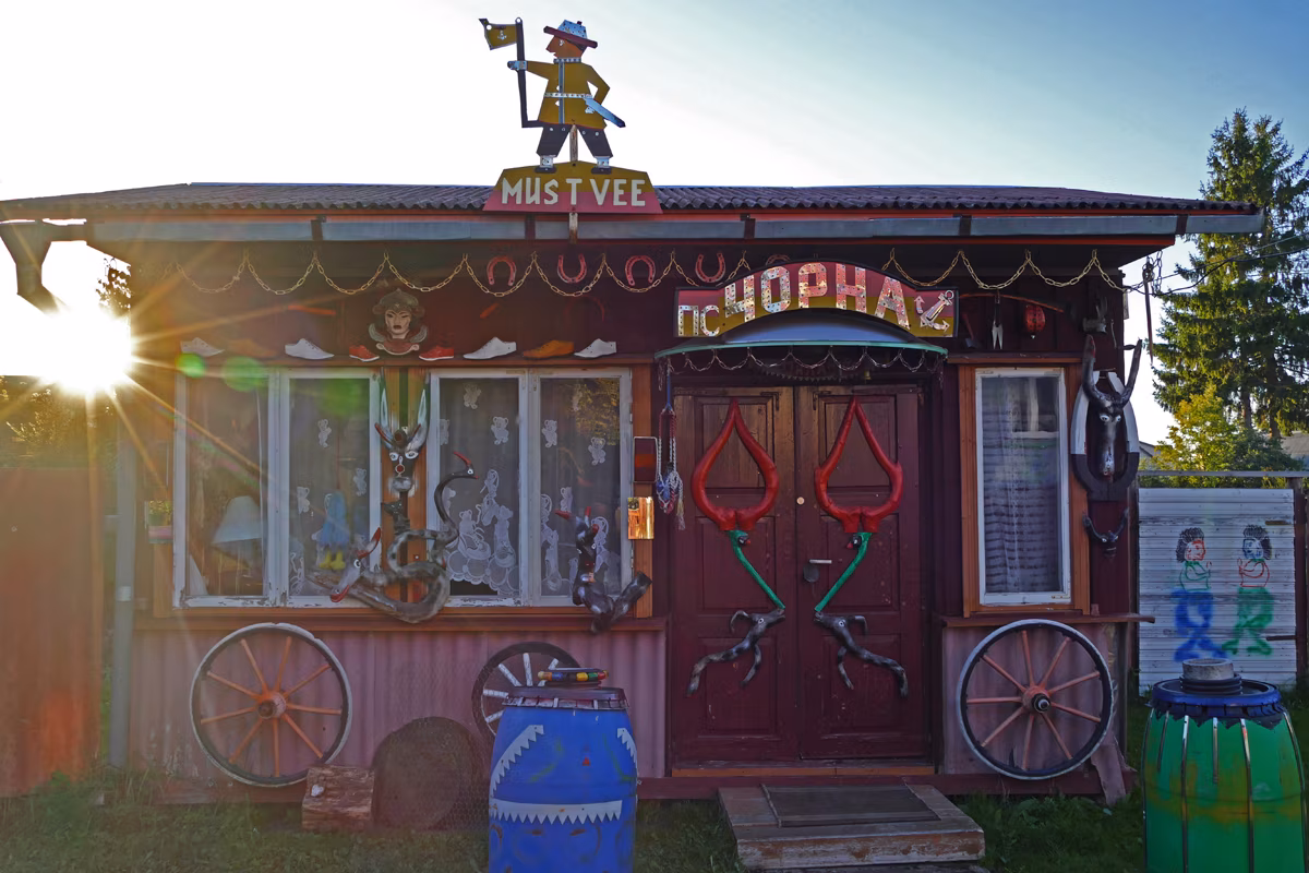 Tšorna galerii seinal ripuvad sõbralikult koos 1938. aasta Detskaja Gazeta väljalõige Konstantin Pätsist ja Varro Vooglaiu tänukiri Olegile 2015. aastast; Hello Kitty, Monster Dolls ja My Little Pony; sigurilõikur, hülsid ja vana maja seinast leitud mürsukild; naise juubeliks kirjutatud luuletused ja Murmanski krabi, mille poeg sõjaväest tõi. Siin on ühe piirkonna ja pere ajalugu asjades. Visuaalsetes lahendustes on tuntav slaavi esteetika ja teatav õigeususümboolika.