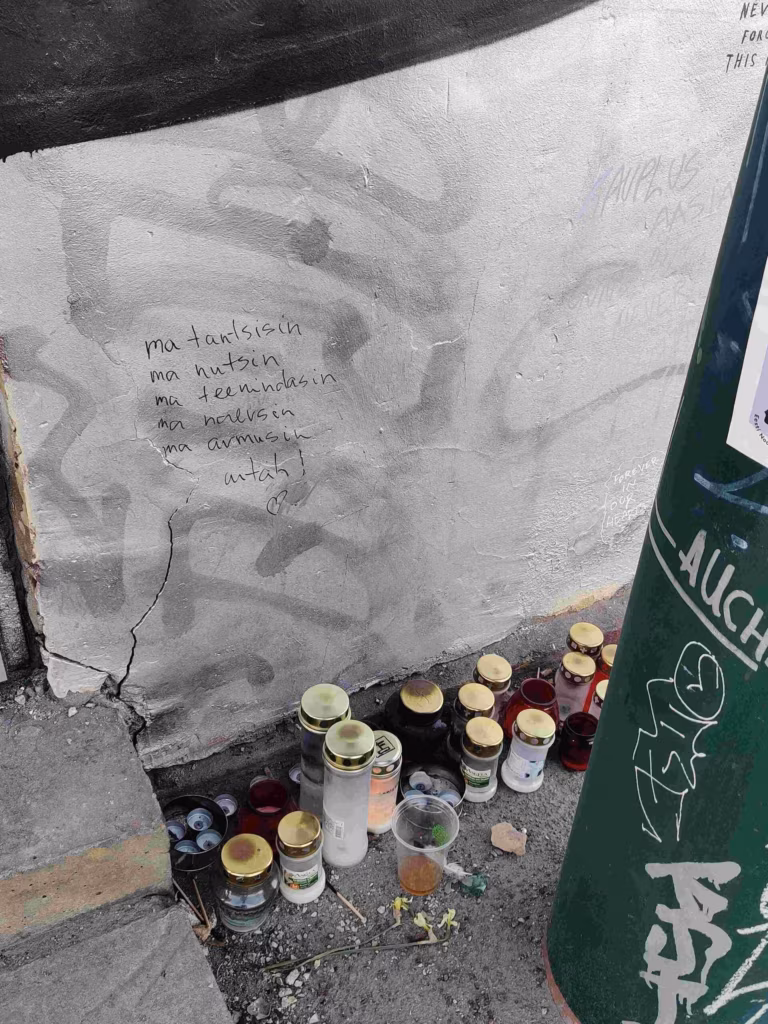 Selle kõige juurde käib veel kuhjumisfaas, mille käigus ruumid kattuvad skeenele oluliste loosungite, kleepsude või plakatitega. Skeenesisene väljendus – näiteks loosungid, mis kõnelevad majareeglitest, muusikamaitsest, ohutusest või poliitilisest hoiakust – muudab ruumi selles viibijatele turvalisemaks, aga on ka heaks tutvustuseks või hoopis hoiatuseks sinna saabuvale esmakordsele külastajale. Sellest kuuluvustundest ja eneseväljendusest saadavast laengust sünnib mööda linna mitmeid iseseisvaid paradiislikke ruume, mille hulgast igaüks leiab õhtuks endale sobivaima.