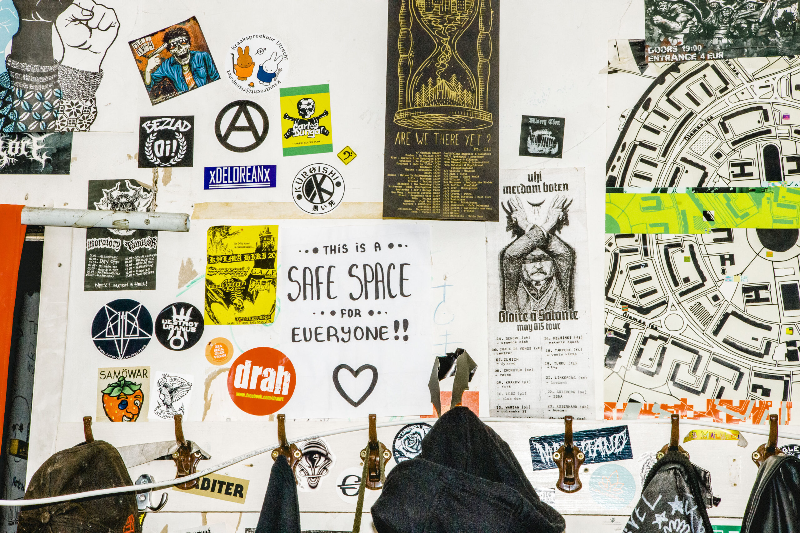 Siis kolitigi ümber Ülasesse. Alguses oli see ruum väga õudses seisus, palju oli remontida. Nüüd on kõik ümber ehitatud, näiteks seal, kus praegu on merch’i-lett, oli väike anarhistlik raamatukogu. Asja hoidsid käigus annetused ja kogukond. Muidugi toores talgutöö ka. Täiesti DIY-teema. Varem oli Ülases toimuv ideoloogilisem, näiteks anarhistlikud kongressid, kus välisdelegaadid käisid tänapäeva liikumisest rääkimas. Olid ka veganõhtusöögid, neid tehti eri korjanduste eesmärgil ja seal käisid väga fancy’d inimesed. Mõni neist annetas mingi viis sotti, sealtkaudu läksid heategevusse suured rahad. Eks me praegu proovime ka seda ideoloogilist poolt tagasi tuua, kui on võimalus inimesi või ettevõtmisi kaasata. Üldine eesmärk on muidugi noortele tegevust anda.
