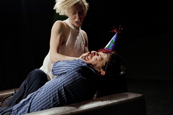Kümme sekundit ausat pimedust ja mäng võis alata. Need kümme sekundit valmistasid publiku peeglissevaatamiseks ette: on hea alustada pildi vaatamist pimedusest, sest siis on üllatus suurem ja silm hoomab rohkem detaile. Ma usun, et tegemist on teatritükiga, mis võimaldab enamikul publikust asetada end abielupaari asemele ja mõelda – mida mina küll nende asemel teeksin? Aga kui mõelda vastupidiselt – kui asetada end hoopis ülikonnas mehe asemele, kes saabub ootamatult ja nõuab pidu, millistele küsimustele me siis vastused saaksime? Selline käitumine ei olegi nii põhjendamatu, kui mõelda 50ndatel tegutsenud situatsionistide bandest, kelle eesmärgiks suvaliste inimestega suhtlema hakkamine. Ringiliikumine ja millegi tegemine, mis oleks täiesti erinev igapäevaelust. Ometi ei olnud seekord ülikonnas mees sõbralik ja viisakas külaline, kes oleks lahkunud pärast seda, kui kaks sõna juttu aetud ja jook hinge all. Kes ta selline oli – kui ta oli?