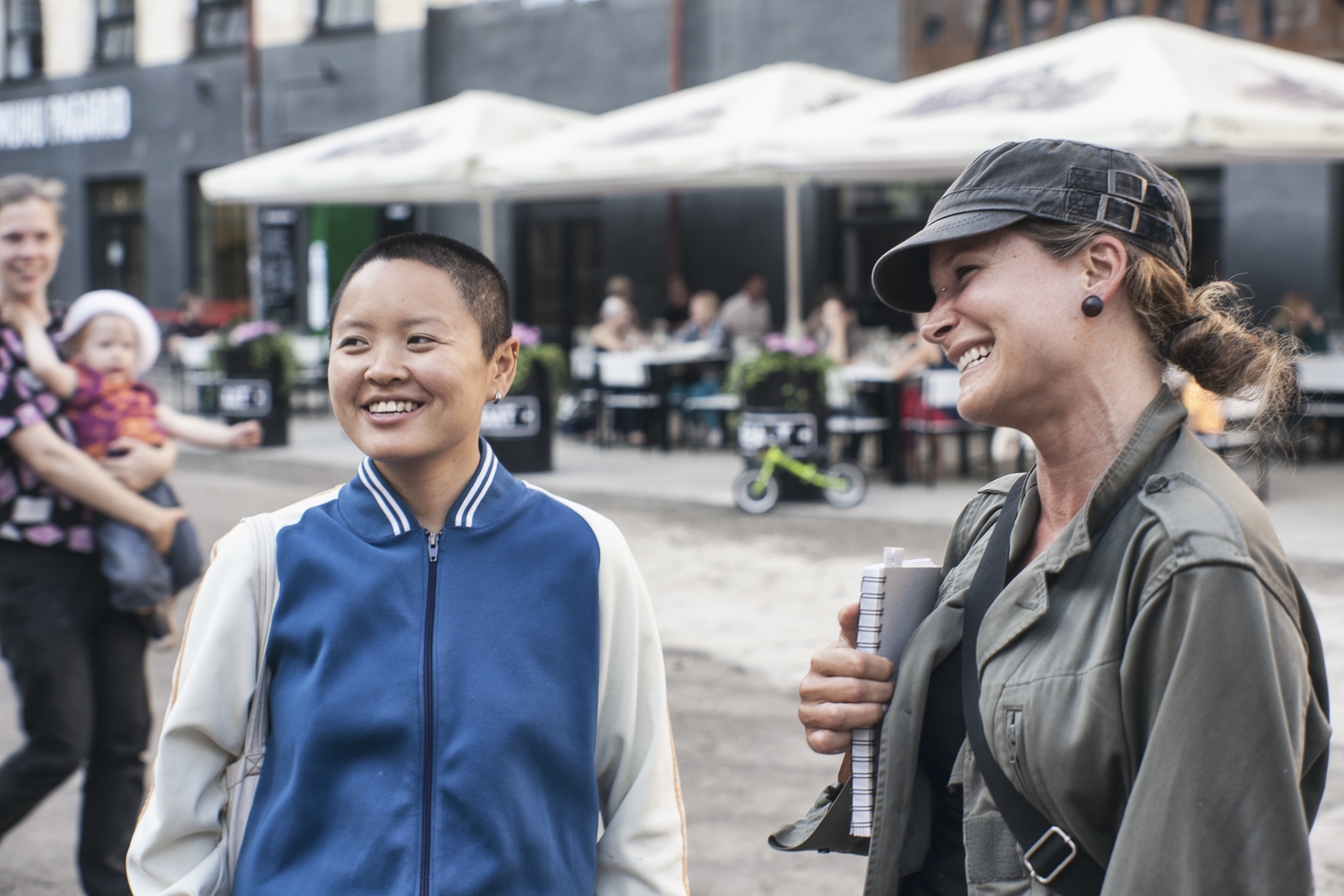 Adel ja Kaisa-Liina: „Nägime Facebookist, et siin on töötoad ja mõtlesime, et miks mitte tulla. Käisime siin üleeile filmiõhtul „Poissi ja koletist” vaatamas. Väga hea film.”