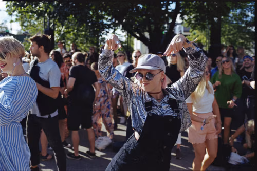 Tähelepanek Flow riietujatest. Siin on mingi värk suurevõrguliste sukapükstega ja peamiseks meigiks on silmade ümber kleebitud sätendav puru. (Praegune trend ühte Soome YouTube’i staari järgida). Muidu on pilt rahulik. Näiliselt on esimese aasta flow’tajatel üle õla Marimekko kangast kott, kogenumatel käijatel juba kõhukott, et käed vabaks jätta, ainsaks põhjamaade seljakotitüübiks/lapsevanematel nagunii Fjällräven. Riietumises on praktilisus hakkanud õnneks moodi minema, on vaid vähesed, kelle iseolemises nii palju ilu on, et kontsert neid pigem häirib. Selleks on Flow mitu selfie-seina ehitanud.