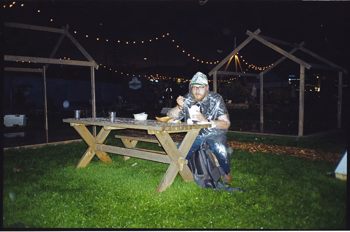 Reede. Festivalialale lähen põhjaliku ettevalmistusega. Ilmateade uuritud, minimärkmik, pastakas, soojad sokid, kamm ja vaid kolme kaardiga rahakott kõhukotis kaasas. Jopetaskus tühi ja märgeteta pudel vee jaoks, teises taskus telefon. Saan kätte oma pressikaardi, -paela, festivalikaardi ja vahetan ilmet: nüüd olen kohal! Võtame kohvi, tutvume lavade paigutusega, toidutelkidega ja teen esimese valiku. Kodulehel tunduvad tõesti vinged toidud, minu esimene söödud pada täidab, kuid on tavaline.