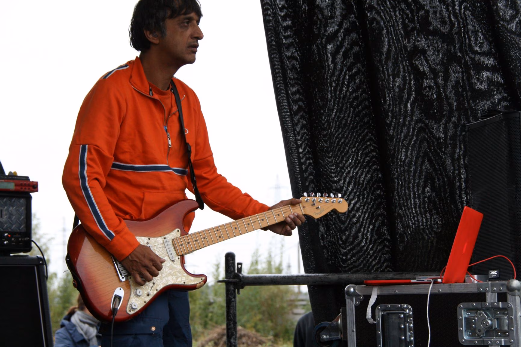 Hall taevas, vihmane. Üheksa kraadi on natuke vähe ikka. Astronoomiline suvi, jah. Ronin mööda tänavaid, ronin üle raudteesilla, edasi, edasi, kuni näen silmapiiril pargitud autosid, rahvamassi, kuulen muusikat. Kitsas märg maariba sirutab end garaažide ja kuuride vahelt avara vee poole. Narva Veneetsia. Leian helitelgi nurga pealt Andrei seltskonna. Selgub, et Asian Dub Foundation hilineb. Kõnnin ringi, teen pilte. Kuidagi imelik on inimesi pildistada, aga sätin oma pressikaelakaardi salli vahelt kenasti esile, vast keegi ei hüppa kõrri. Siis märkame, et ADF-i helimees on jõudnud helipuldi taha, näpus paks joint, mille lõhn käib üle pea.