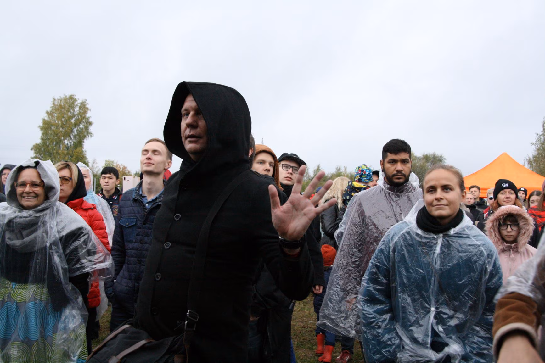 Valgesse mantlisse ja salli mähitud tüdruk tervitab Kreenholmi turvaväravate juures kohaletulijaid, kolme peale jagatakse üks kaevurilamp kaela riputamiseks. Andrei hoiab oma vihmavarju meie kolme kohal, tema ülejäänud sõbrad moodustavad oma ringi, mängivad oma lampidega.