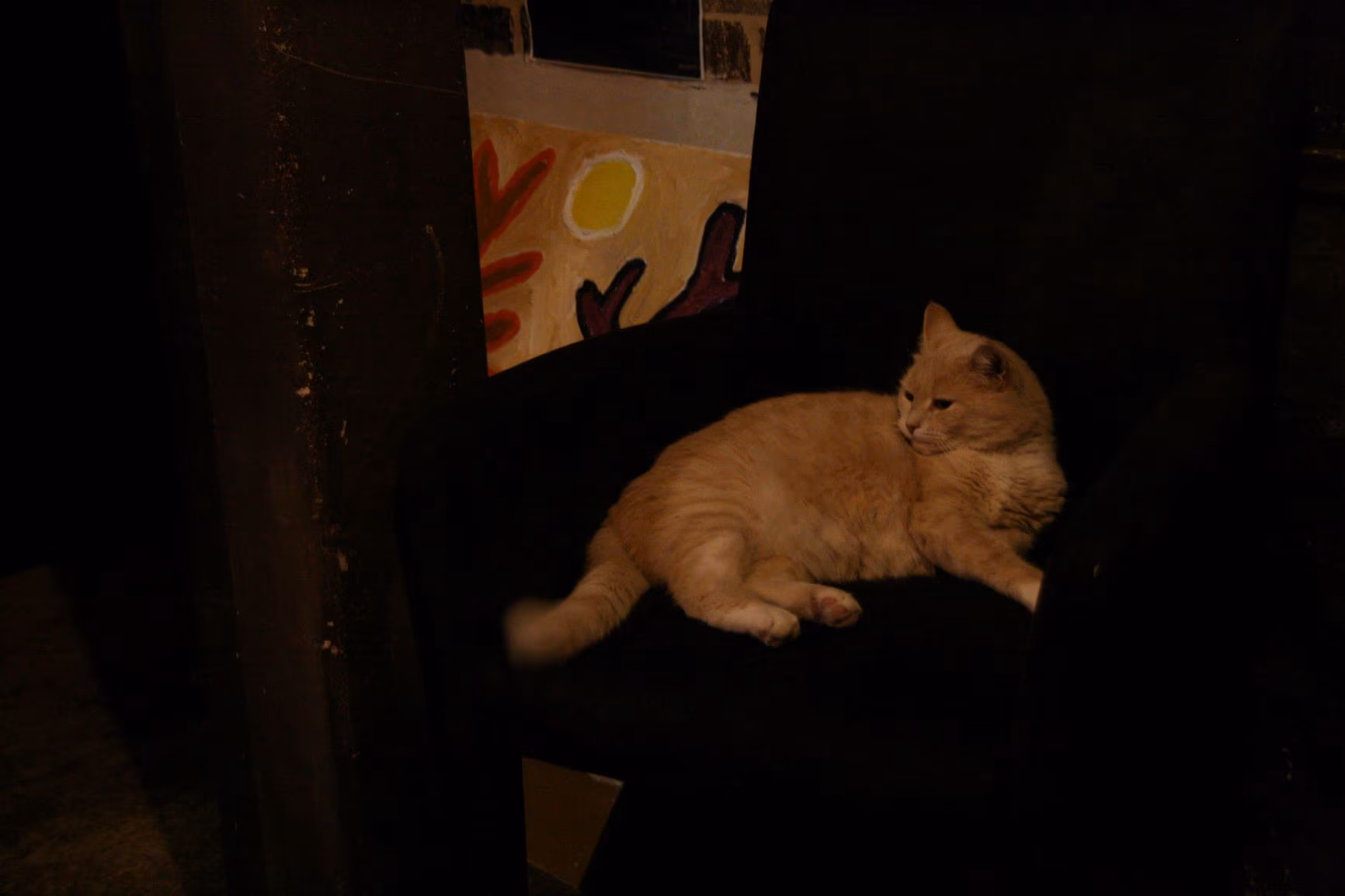 Ronime mööda treppe üles, veel üks korrus, veel üks, kusagil uksi ei ole, ainult trepid ja laimirohelised seinad ja tuhmid halogeenlambid. Jõuame viimase korruseni, seal koridor, nüüd lõpuks ilmuvad uksed. Koridoris on akvaariumid, üks poksimiseks mõeldud kummist torso, millele kauboimüts pähe pandud, kusagil ripub üks kaisuloom-orangutan, vau, orangutan, päriselt või? Okei, hea leid, Andrei.