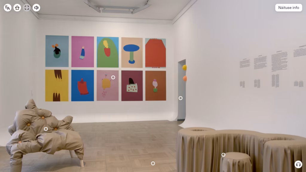Tallinna Kunstihoone 2021. aasta Flo Kasearu näituse „Elust välja lõigatud” virtuaalvaade