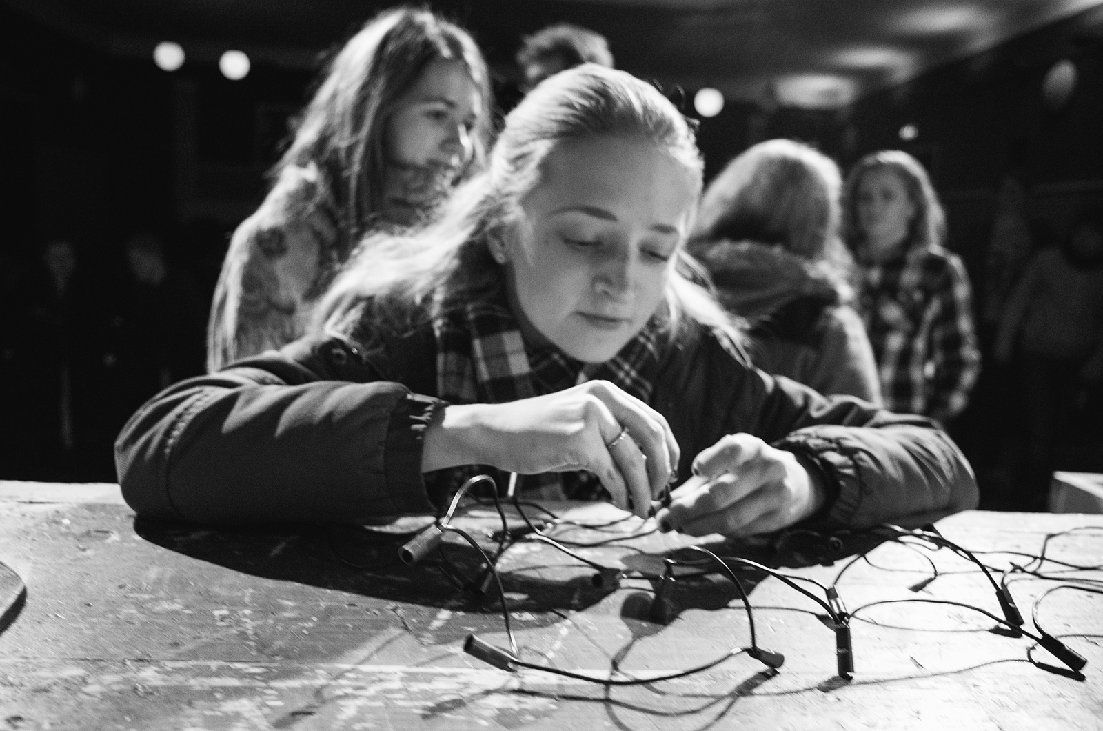 Raul Villem selgitab vooluvõrgu-metafoori kaudu Jumalasse uskumist: sinu suhtumine on reostaat. Taamal ööklubi Privé diskokerad ja lavavalgustid. Foto: Aleksander Kelpman