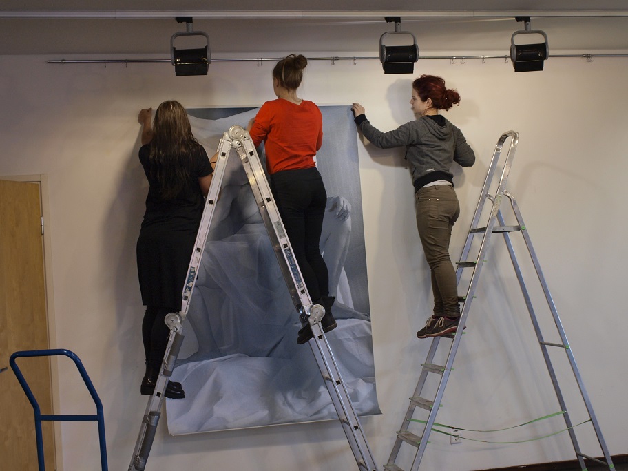 Õpilased näitust paigaldamas. Foto: Gregor Taul