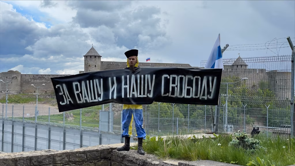 Vovan Kaštani aktsioon Narvas 04.06.2023. Foto: Dmitri Fedotkin ERR / Scanpix