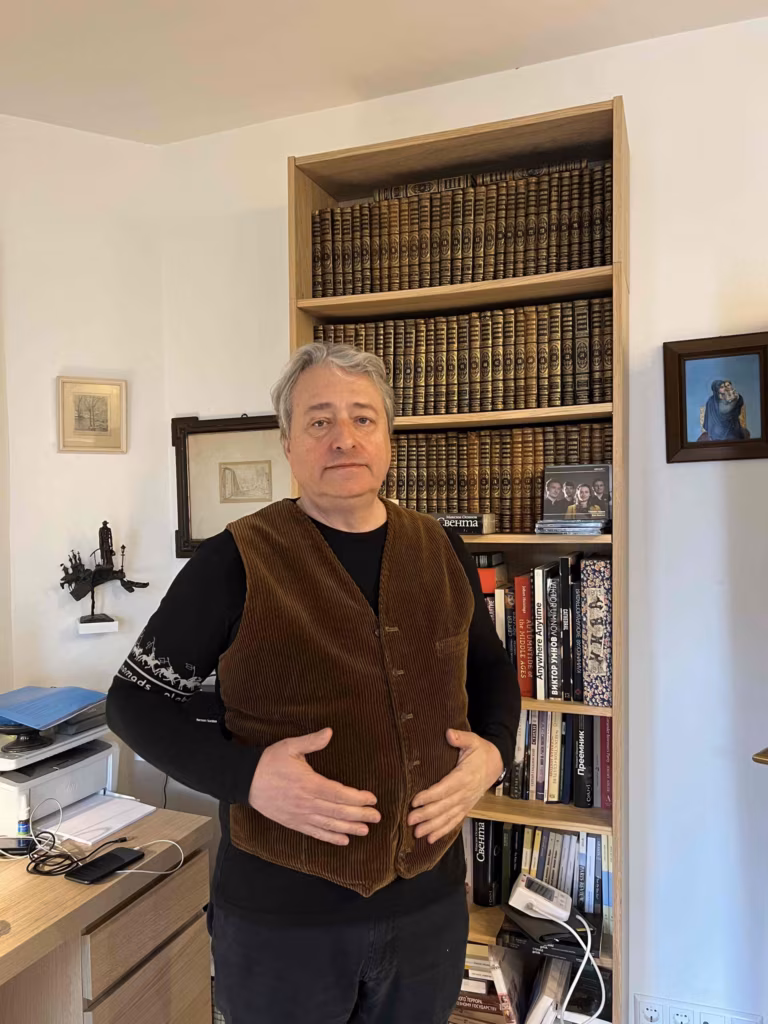 Ma lahkusin Venemaalt neljandal märtsil, kohe pärast sõja algust. Läksime naisega Jerevani, kuna mujale Euroopasse lennata ei saanud. Hiljem vaatasin, et sain seal umbes sada kõnet iga päev. Inimesed helistasid, tahtsid aidata. Viimaks saime mina ja mu naine Schengeni viisad, kuid mu poeg mitte. Ta veetis järgmised viis kuud oma perega Jerevanis. Neil oli väga keeruline välja saada, see oli üleüldse kohutav aeg. Aga, jah, nüüdseks on kogu mu pere Frankfurdis. Mu naine käib aeg-ajalt siin. Tütar on muusik ja elab juba 2014. aastast abikaasaga Frankfurdis, nii et nad on põhimõtteliselt sakslased. Neil on tütar – varsti juba kolmeaastane.