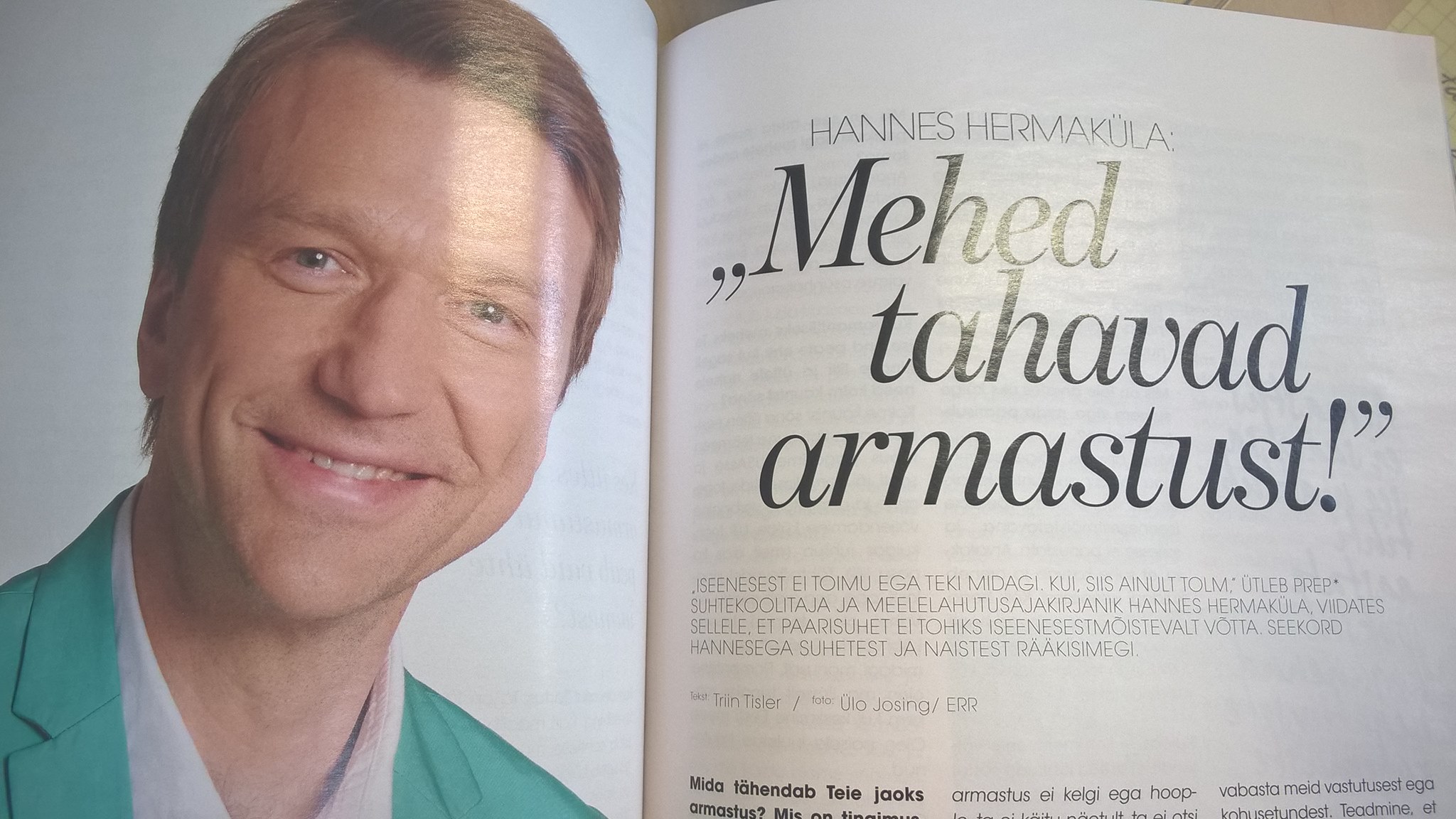 Tervise teemadel ilutseb lk 230 pealkiri „Kuidas kallima tervist hoida?”, mis parimatest kavatsustest hoolimata toodab ettekujutust meestest kui abitutest totudest, kes ei suuda iseseisvaltki normaalselt süüa ega liigutada ja kelle tervise eest peab vastutuse võtma… kes muu kui naine! Kas selle loo vastuseks on siis see, et naine peab mehe käest kinni võtma ja ta trenni vedama? Mehele tervislikku kalamaksaõli sisse söötma? Mu meelest on selline rollijaotus ema ja lapse vahel, mitte kahe võrdväärse partneri. Ja ma tahaksin, et naisteajakirjad lõpetaksid naistele destruktiivsete suhete normaalsuseks maalimise. Naise asi ei ole olla oma partnerile ema eest.