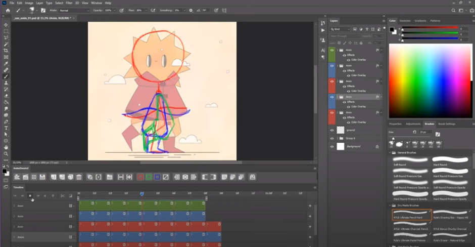 Kuvatõmmis Motion Design Schooli videost  „Frame-by-frame Easy Walk Cycle – Photoshop & After Effects Tutorial”
