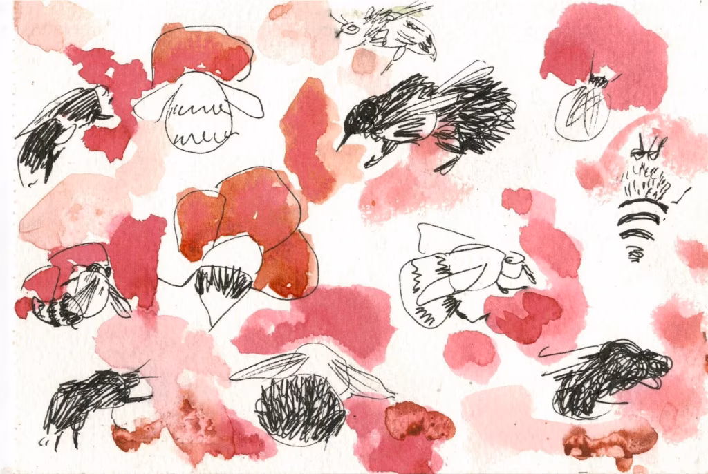 Mina olen kasutanud keskendumiseks peamiselt joonistamist ja maalimist, nii tajun eri meelte kaudu paljusid tegutsejaid enda ümber. Mõne aja pärast hakkan mõtlema ka enda rollile koosluses ja avastused on vahel üsna ootamatud, näiteks kimalasi joonistades tundusin nende kõrval väga aeglane, teinekord mõistsin üht kärbest jälgides, et ta ei pannud mind vist tähelegi, olin väljaspool tema tajuvälja. Grupiga joonistusharjutusi tehes olen sama täheldanud: inimesed on kirjeldanud, kuidas joonistamine on aidanud vahetult ümbritsevaga suhestuda ja märgata esmapilgul nähtamatut.