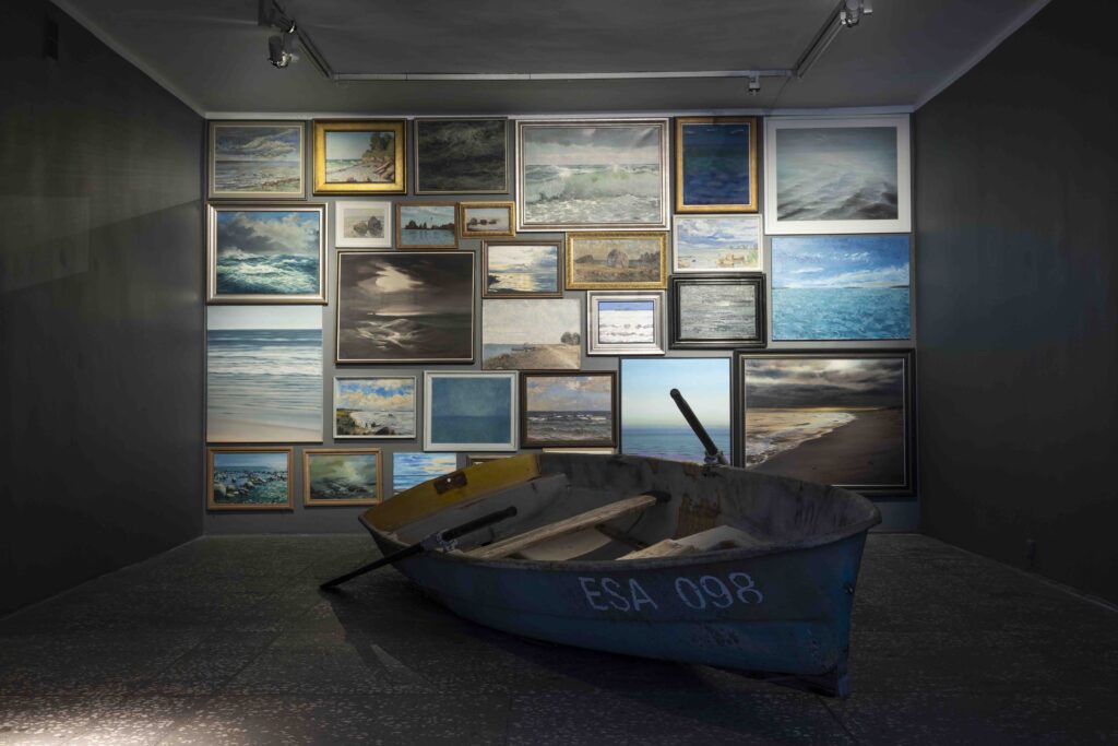 „Kui on meri hülgehall…” Õigupoolest ei ütle neid sõnu näitusel keegi välja, õigupoolest on laulu tegelik pealkiri „Majakene mere ääres”, aga „Uru Valteri isikunäituse” keskmes ei olegi ju majakesed, vaid ettearvamatu meri, mis on aerupaadi tühjaks teinud ja vraki galerii tagatuppa värvilise altari ette visanud. Nii nagu Neeme Külma ja Tõnis Saadoja ruumiinstallatsioon „Puri” (2021) Kumu püsinäitusel „Identiteedimaastikud. Eesti kunst 1700–1945” koondab hiiglaslikule kaardus seinale 52 baltisaksa portreed, püüavad Linnagaleriis pilku 29 meremaali eri autoritelt, maalitud eri aegadel ja kohtades, Kihnust Käsmuni, Andineemest Norrani, laenatud kokku Tiit Pruuli ja teiste erakogudest ning Eesti Meremuuseumilt.