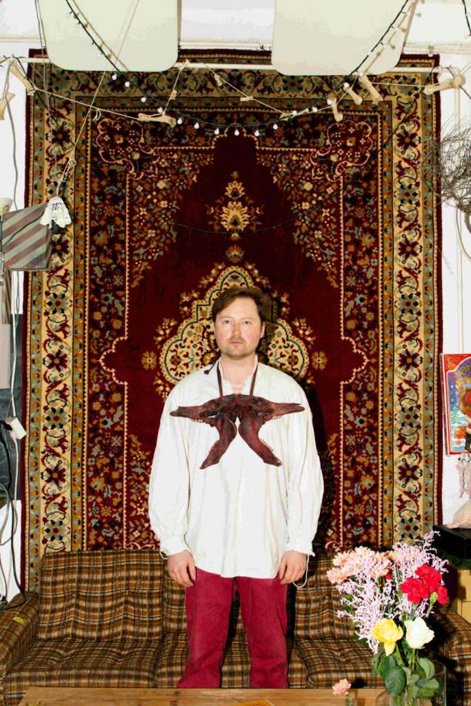 Jaa, mu töömeetod on kogumine ja nende asjade kasutamine nii, et ma mingil määral muudan neid. Mulle meeldib, kui ma ei hakka maalima n-ö valgele lõuendile, vaid keegi on vedanud sinna juba kriipsud, millega ma suhtlema hakkan. (Toob riiulist riidepuu, millest on saanud puidust lülidega „kaelaskantav junn”, nagu Urmas seda ise tutvustab.) See on mu vanavanaisa tehtud riidepuu, aga see on niivõrd äge objekt. Siin on isegi jooned peal, mille mu vanavanaisa on hariliku pliiatsiga märkinud, et õigesti puurida. Ma hakkasin selle jutiga suhestuma, märkisin enda mõõdud sellest lähtuvalt. Jälle mingisuguse inimese jäljed, keda ma ei ole kunagi elus kohanud, sest ta suri juba enne minu sündi. Ta oli tisler ja sain endale kõik tema tööriistad, mis pidid samamoodi äraviskamisele minema.