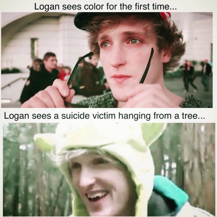 Esimesel pildil: Ameerika youtuber ja internetikuulsus Logan Paul külastas 2017. aasta viimasel päeval Jaapani kurikuulsat Aokigahara metsa, mis on populaarne enesetappude sooritamise paik. Olles sealt laiba leidnud, avaldas ta videopostituse end üles poonud mehest. Internetis levis kulutulena pahameeletorm ja Logan Paulist sai üleöö surma üle irvitav meemikangelane. Meem: Redditi kasutaja spammingpleb123