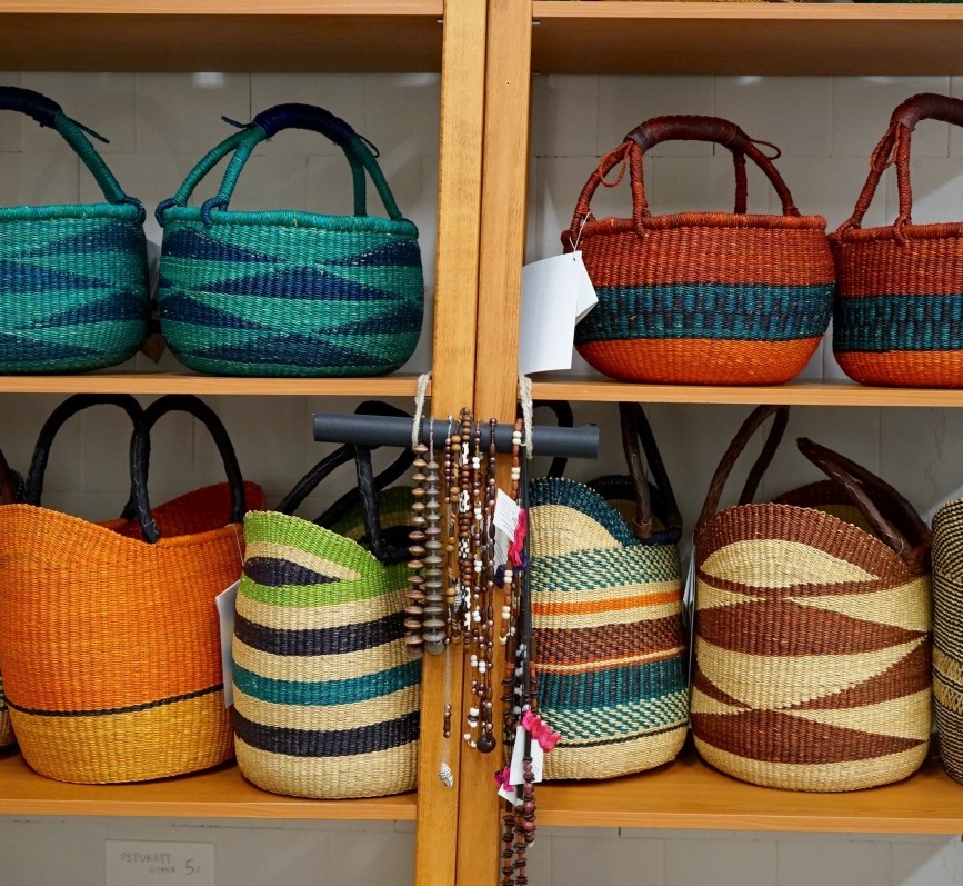 Imeilusad Bolga korvid, afgaani naiste tikitud kotid, Aafrika kangastest pajakindad, põlled, kotid, puhas shea-või Ghanast ning süüria naiste valmistatud ehted – palju häid ja teistmoodi kingitusi jõuluvana kotti!