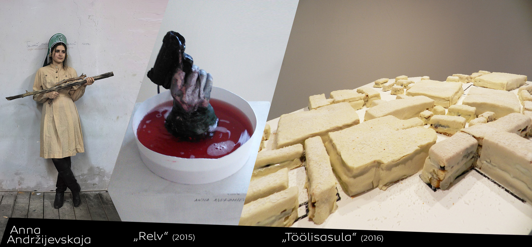 Anna Andržijevskaja: Mina töötan kunsti tajumise ja tarbimise teemaga söödava skulptuuri, video, graafika ja installatsioonide vahendusel. Grupi Sever-7 koosseisus osalen performance’idel. Suurem osa projektidest õnnestub ellu viia, kuid on ka selliseid, mille vastu huvi pikaleveninud töö käigus ära kaob. Siin on abiks see, kui on olemas selge ettekujutus, milline peab olema tulemus, kuid seda juhtub harva.
