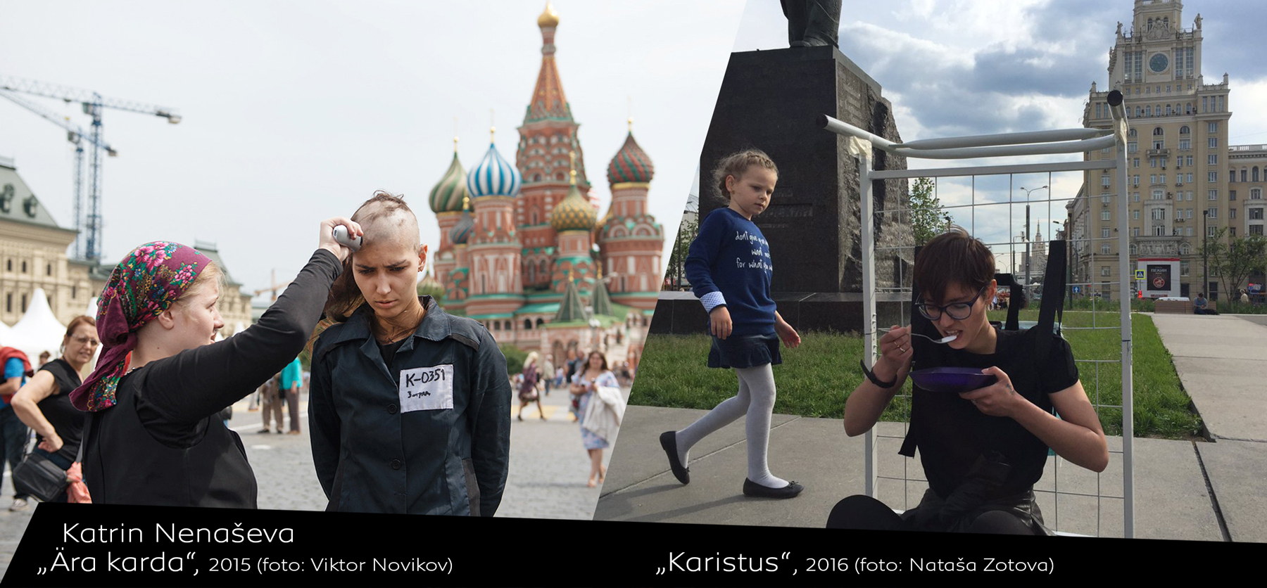 Katrin Nenaševa: Minu aktsioonid on tavaliselt pikaajalise loomuga, mille käigus ma võtan üle ühe või teise rolli, toon kuuldavale teatud informatsiooni, uurin reaktsioone ja kommunikatsiooni. Pikaajalisus on minu jaoks väga oluline tegevuskunsti põhimõte, sest just suure läbielamise raames uurin ma mitte ainult väliseid reaktsioone, vaid ka iseennast, oma keha. Minu viimased tööd kestsid kuu aega (aktsioon „Ära karda”) ja 21 päeva (aktsioon „Karistus”). Ma töötan vangla teemaga pidevalt – minu aktsioonid on pühendatud inimeste eludele vanglates, lastekodudes, internaatides. Igale tööle eelneb uurimise ja süvitsi minemise protsess – ma käin tihti kinnistes asutustes, tutvun seal inimestega, püüan teha midagi nendega koos. Aktsioonide abil tahan rääkida reaalseid lugusid ja elada neid läbi oma keha ja suhete kaudu välises maailmas olevate inimeste ehk vaatajatega, inimestega tänavatel, kauplustes, metroos, parkides. Minu aktsioonidel on alati süžee, nagu filmis või etendusel. Kõikide projektide tähtis komponent on tekstiline dokumenteerimine minu sotsiaalvõrgustikes, kus ma kirjutan alati sellest, mis minuga toimub, pannes sinna sisse päris inimeste – minu kangelaste – lugusid. Võimalik, et tekst on siin isegi tähenduslikum dokument kui foto või video.