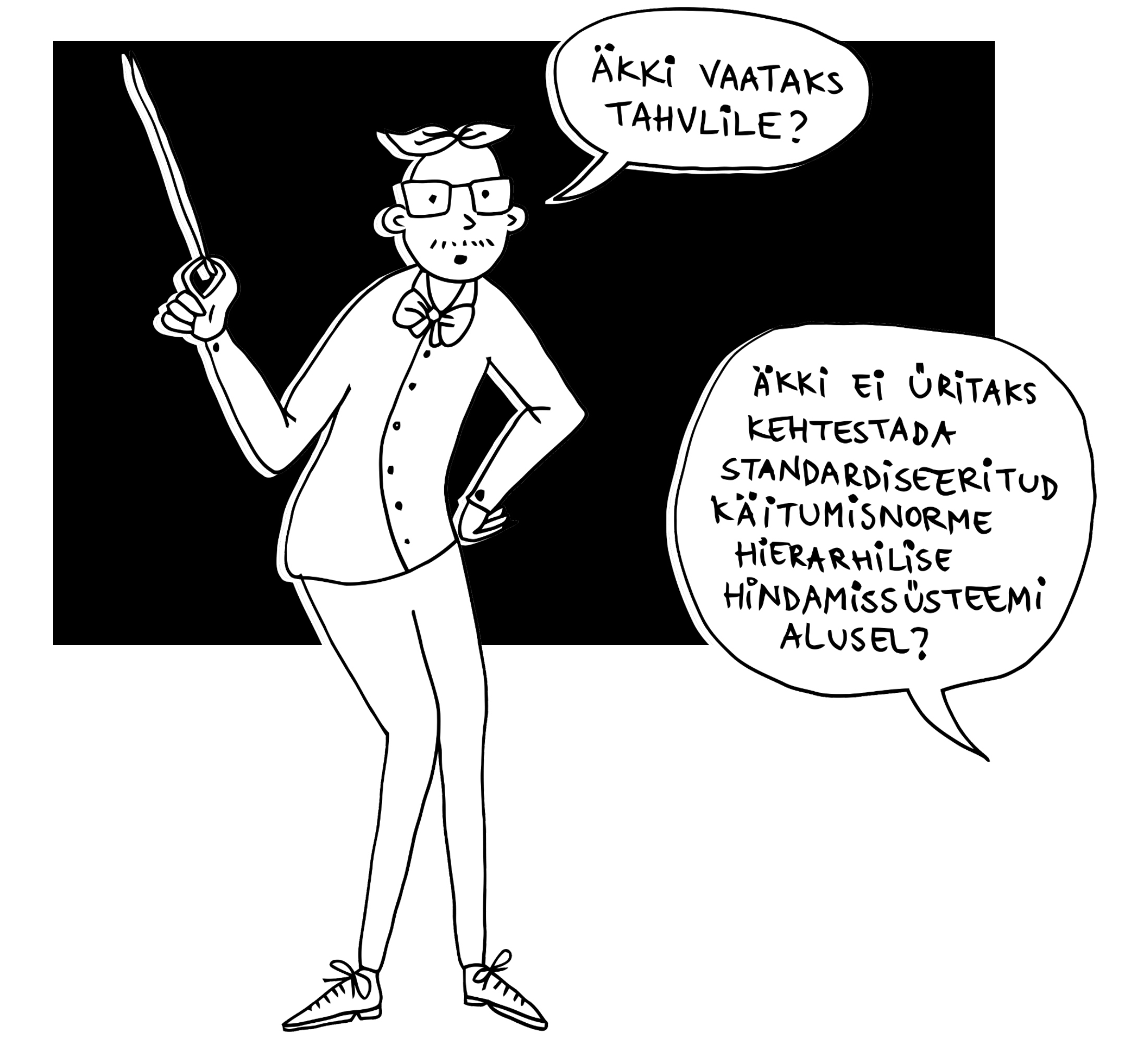 Konkreetseid näiteid toomata jääb mul siin üle vaid noorõpetajatele edu soovida. Õpilaste trots ja ülemeelikus ei tulene ju isiklikust vimmast või pahatahtlikkusest. See on lihtsalt üle standardiseeritud käitumisnormide pulbitsev noorusjõud koos vajadusega testida selle süsteemi tugevust, millesse nad on surutud.