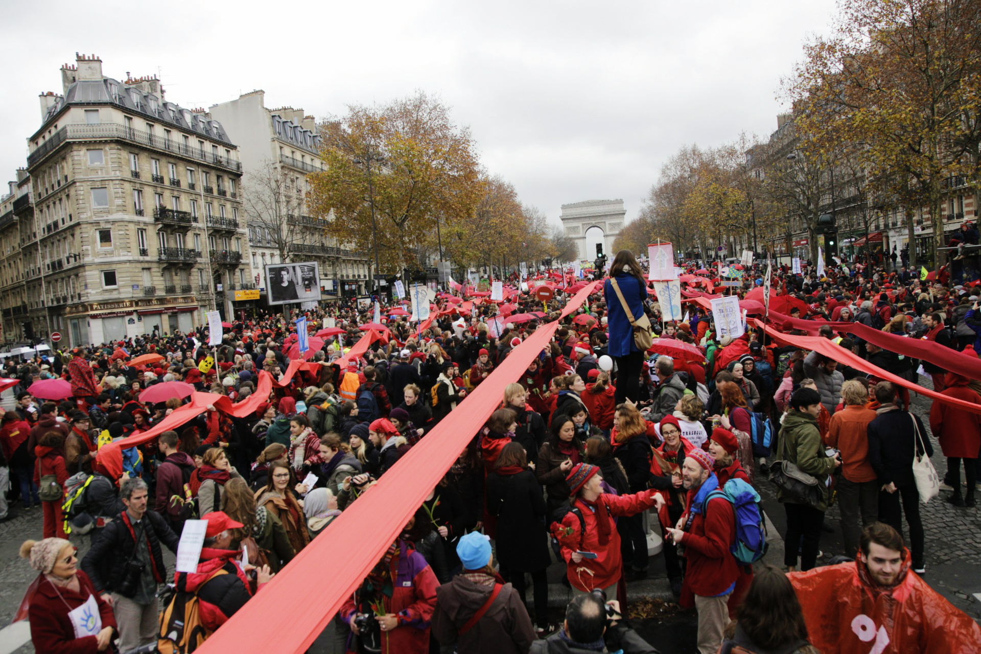 Laupäeval, 12. detsembril toimus kolm aktsiooni, mille sõnum oli kliimaõigluseni jõudmine. Neist kõige intrigeerivam, nimega Red Lines Action, sai politseilt toimumisloa alles 40 minutit enne aktsiooni algust. Ent meeleavaldus oleks toimunud niikuinii – üle kümne tuhande inimese kogunes Triumfikaare ja Place de la Porte Maillot’i vahele Avenue de la Grande Armée tänavale, moodustades kahekilomeetrise bänneritest ja vihmavarjudest punaseks värvitud joone Pariisi võidusümboli ja suurima kaubanduslinnaosa vahele.