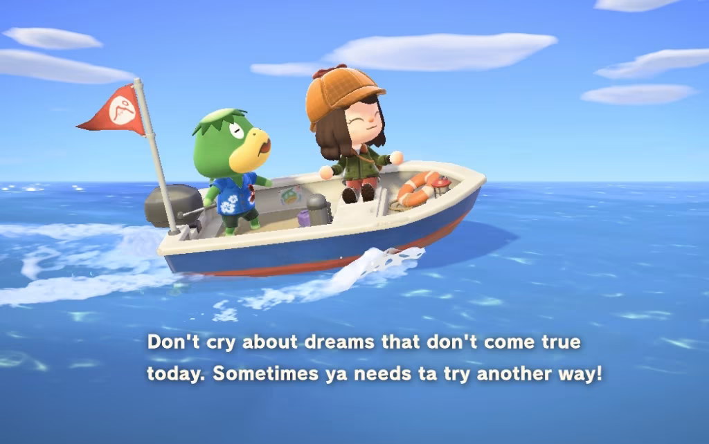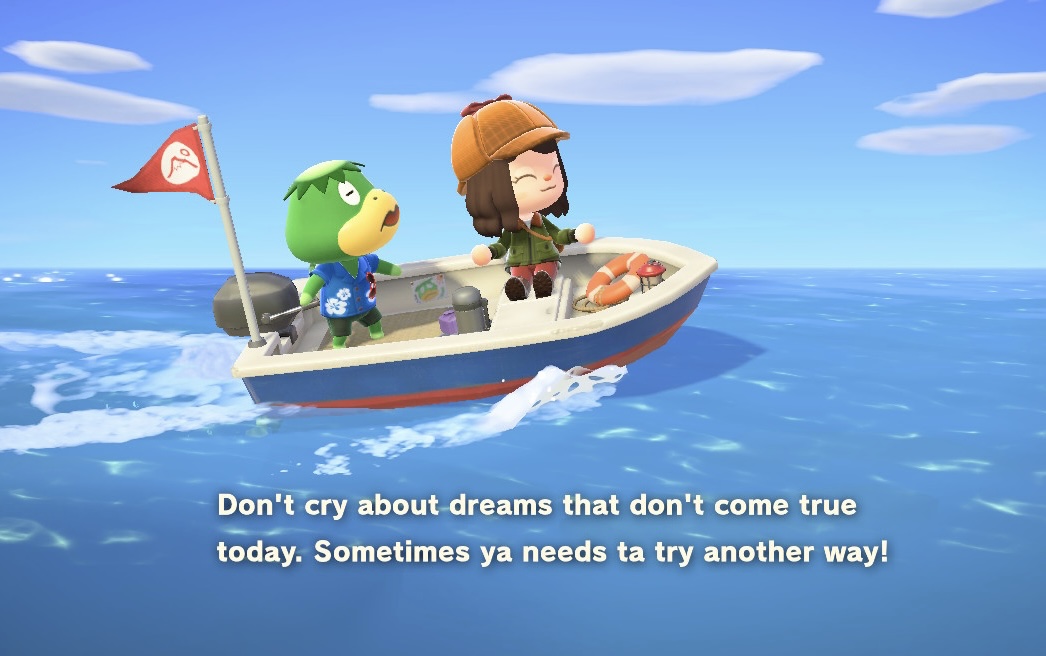 On pühapäeva õhtu. Sõber kirjutab, et ostis uue Switchi mängukonsooli, ja küsib, kas ma „Animal Crossingut” veel mängin. Ta tahaks mängus minu juurde kirsse korjama tulla. Ma ei ole oma saart pikalt külastanud, aga otsustan minna – sõbra hüvanguks.