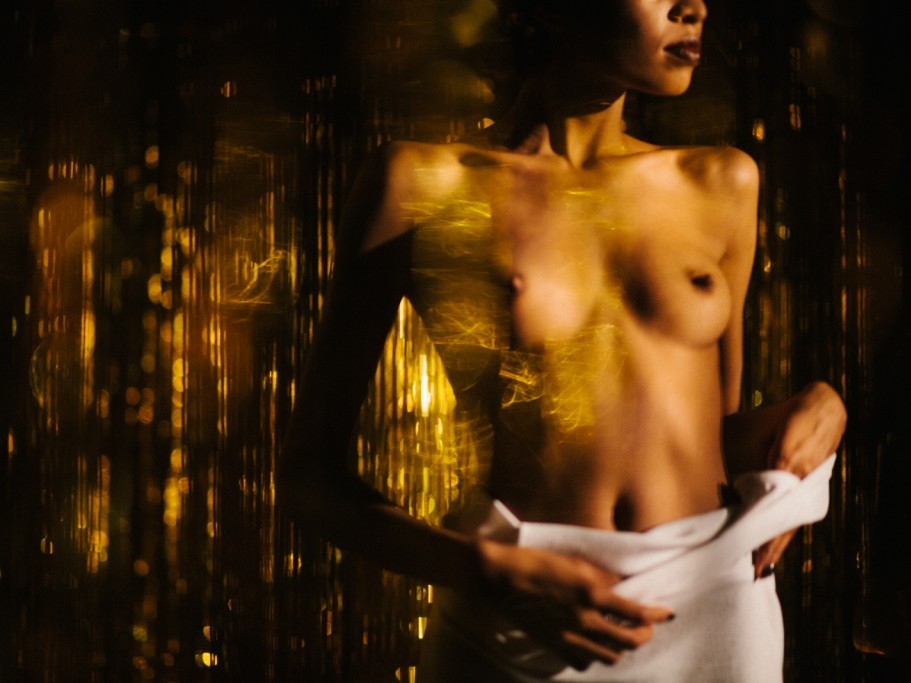 Mees piilub üle ühe läve, kust paistab kellegi blondide parukajuustega kaetud selg. Järgmise ukse tagant silmab ta lihaselist jalga rihmadega kontsakingas. Mees astub läbi koridori lõpus olevate kuldsete narmaskardinate ning saabub punaste küünaldega valgustatud tühja tuppa – kammerlikku teatrisaali. Lavatagust varjavad samuti kuldsed narmad ning mees istub pärast seljakoti nurka toetamist ainsale tugitoolile, mis on lava poole suunatud. Ta poetab laual olevasse purki taskust mõned mündid.