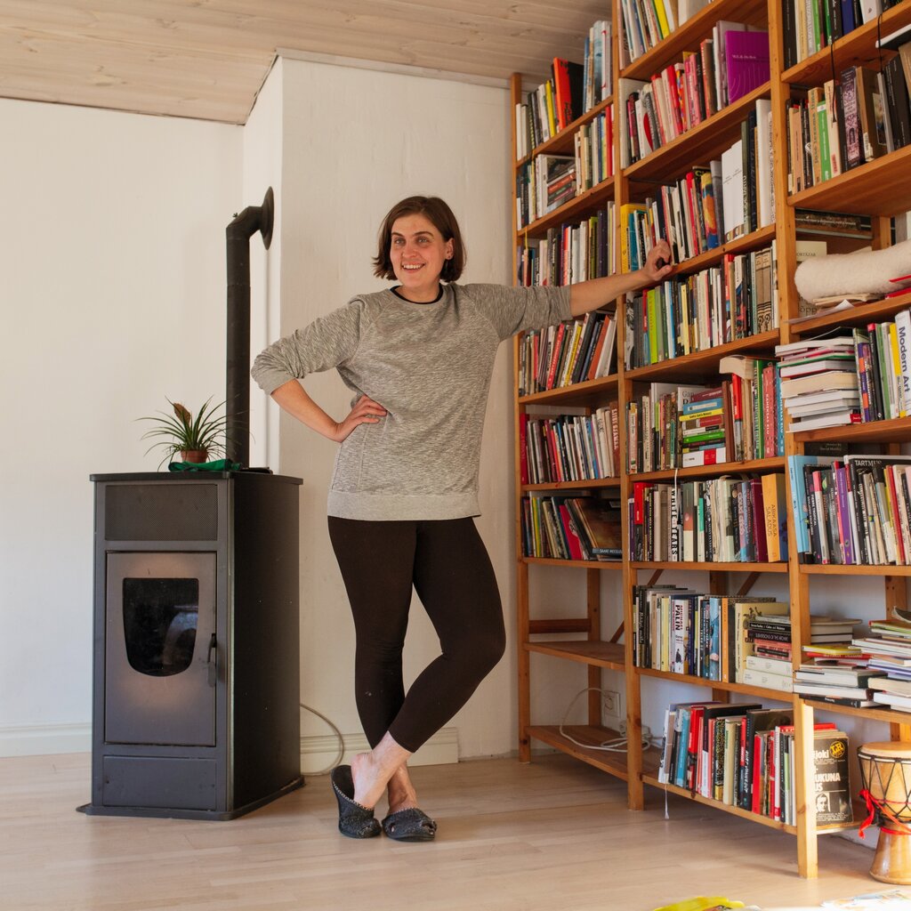 Kui mõne aja pärast seenepiruka ja kohvi manustamiseks istet võtame, tuleb Kaisa selle alaväärsusküsimuse juurde aga veel ise korraks tagasi ja väga tore, et tuleb, sest selliseid võrdlusi ma ise juba välja ei mõtleks! „Mul ei ole väga hingelist suhet oma… ei, see on vale sõna… ei ole sellist meeleheitlikku suhet oma raamatutega või üldse omandiga. Kui maja läheks põlema, siis ma haaraksin kaenlasse ikkagi lapse ja koera.” Mis ju ongi täiesti mõistlik, ega minagi raamatuid põlevast majast päästma ei sööstaks (kuigi mõne pisara ilmselt valaksin küll…)! Aga samas tundub mulle, et saan siin laua taga istudes ühtäkki aru küll sellest eristusest. Et see polegi vist niivõrd au- või alaväärsustunne, vaid pigem üsna põhimõtteline vastandumine mingit teist tüüpi raamatuinimestele, kes võib-olla eriti raamatuaastal või nõnda rohkem silma torkavad.