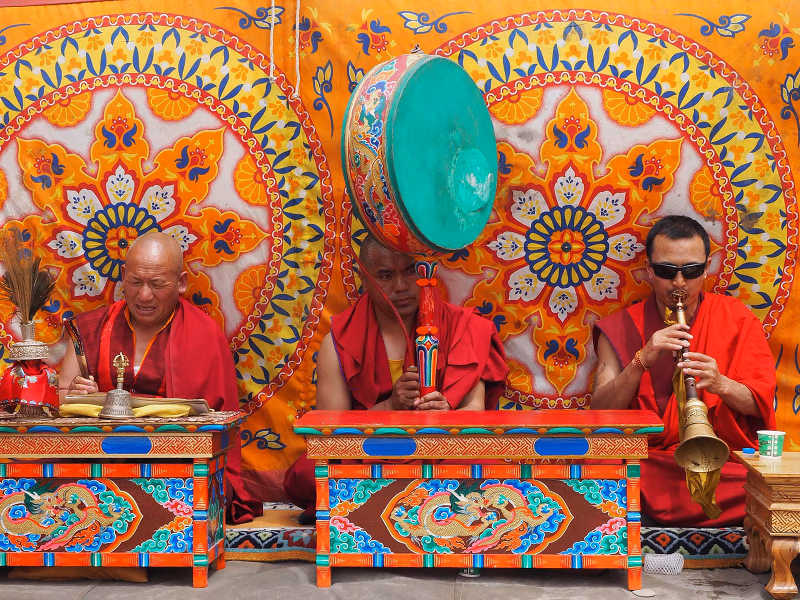 Päev läbi kestval maskitantsu tseremoonial tantsitakse ja lauldakse trummirütmi saatel ette budistlike õpetusi ning nii on mungad läbi aegade kirjaoskamatule külarahvale õpetusi jaganud. Turistidele on maskitantsu tseremooniast osavõtmist hakatud lubama alles viimastel aastatel.