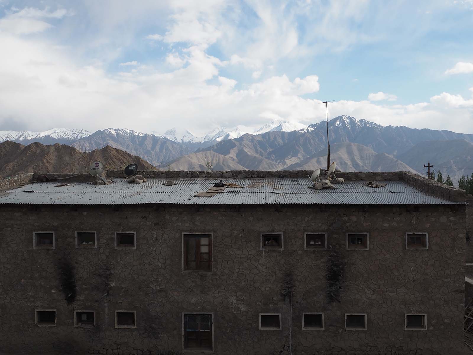 Vaade magamistoa aknast Leh-d ümbritsevatele mägedele.