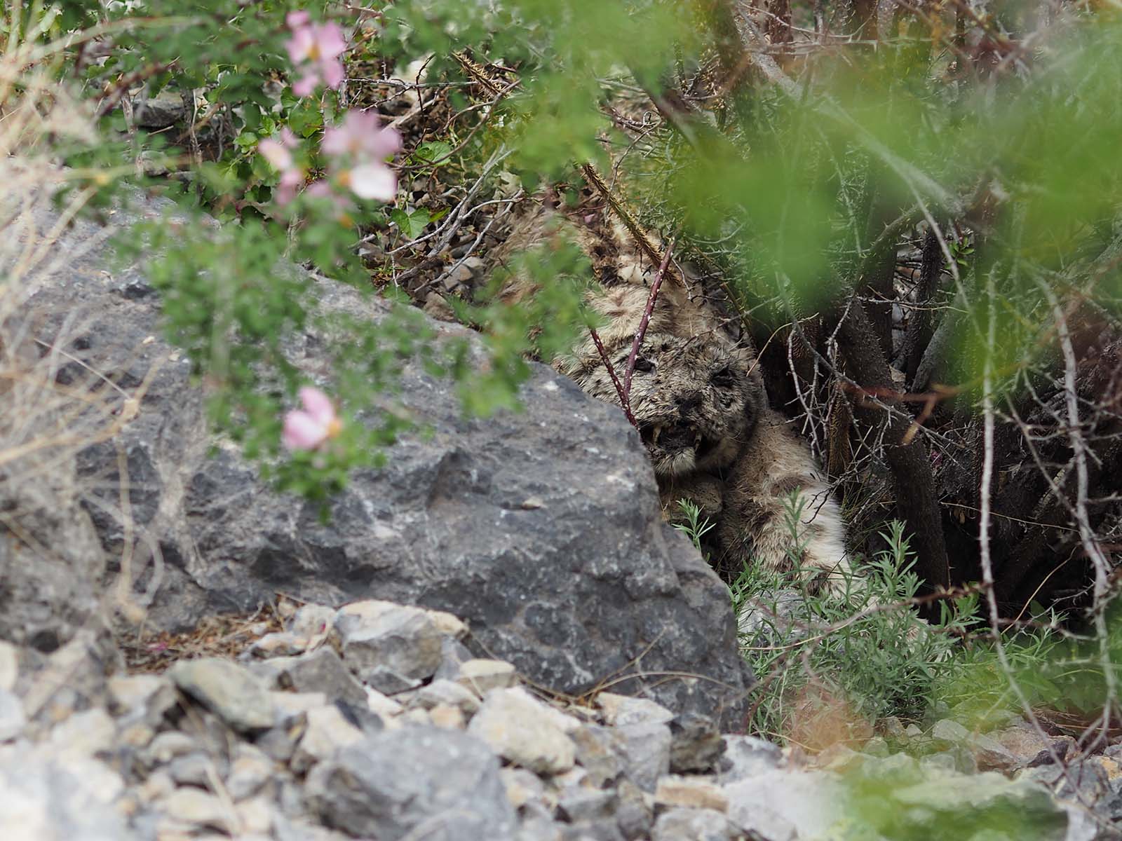 Lumeleopardi korjus, mis ilmselt viimase suurema vihmasajuga mägedest alla veerenud.