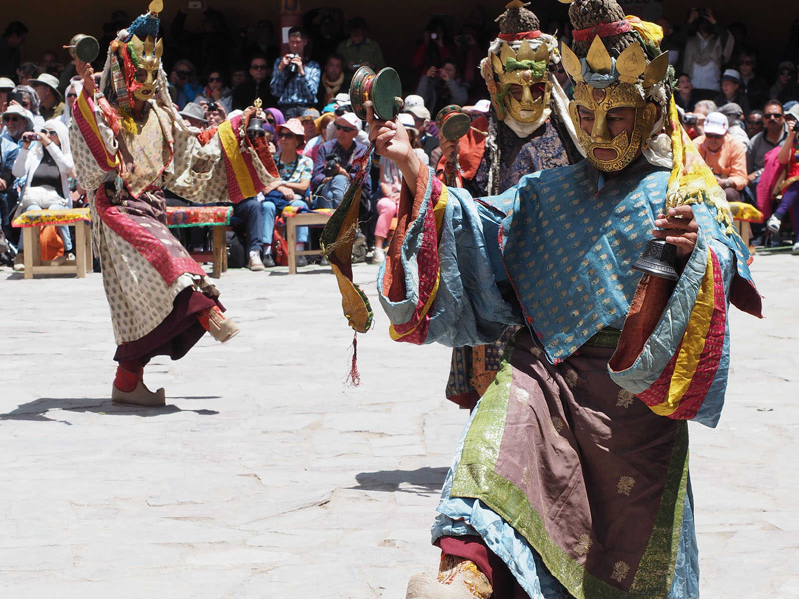 Päev läbi kestval maskitantsu tseremoonial tantsitakse ja lauldakse trummirütmi saatel ette budistlike õpetusi ning nii on mungad läbi aegade kirjaoskamatule külarahvale õpetusi jaganud. Turistidele on maskitantsu tseremooniast  osavõtmist hakatud lubama alles viimastel aastatel.