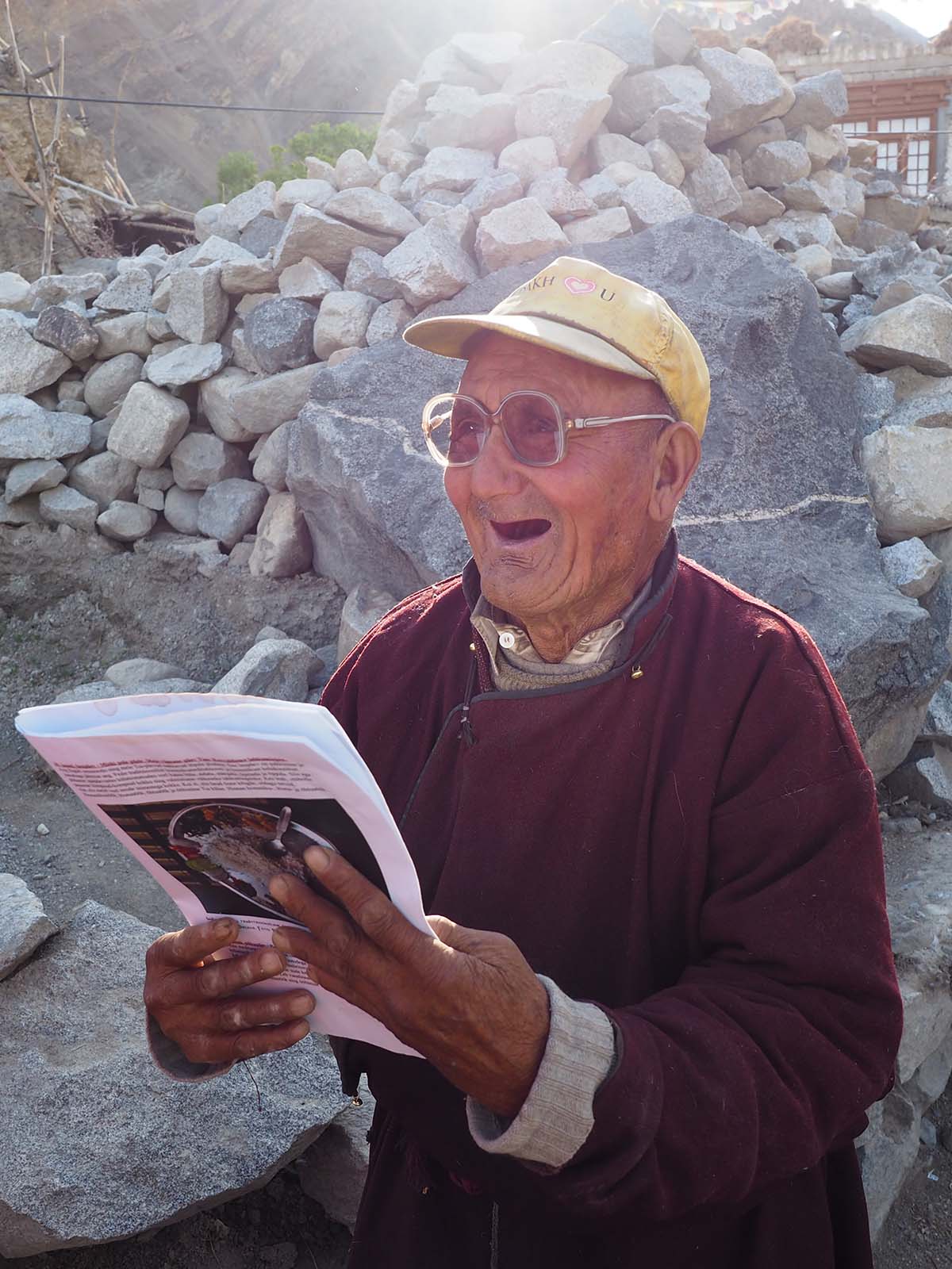 Tia külaelanik rõõmustab paari aasta taguse pildi üle, mis temast reisi kataloogis trükitud. Lisaks on Laama talle just üle andnud kellegi eesti pensionäri vanad prillid, mille üle Tia küla vanal mehel nähtavasti samuti väga hea meel on.