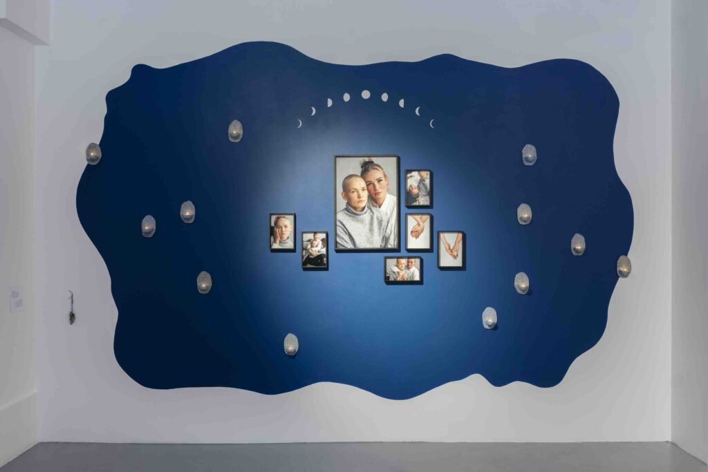 Diāna: Installatsioon „Minu sametised talved” koosneb fotodest, seinamaalist ja küünlaalustest. See on minu jaoks esimene kord keraamika ja eeterlike õlidega töötada. Fotodel kohtume kaksikõdedega. Brigit kirjeldas tööd kuraatoritekstis hästi: „[P]erekondlik sarnasus ja erinev isikupära viitab sõbrale kui teisele endale, kelle puhul sarnasuste ja erinevuste nüansirikas komplekt on aluseks ka „oma inimese” äratundmisel.” Minu jaoks viitab see ka iseendaga sõbrunemise ideele. Teos on altar, mis on pühendatud mu sõbrannadele, kes aitavad mul julgemalt mõelda ja end iseendas koduselt tunda. See on sõpruse, naine olemise ja läheduse tähistamine. Töö viitab looduse ja naise keha tsüklilisusele. See on kutse tsükleid austada, sisemine talv omaks võtta ja meie sees peituva pimedusega sõbruneda. Puhata selles ebamugavuses, kuni saabub kevad ning oleme jälle valmis uueks värskuse, jõu ja taassünni faasiks.
