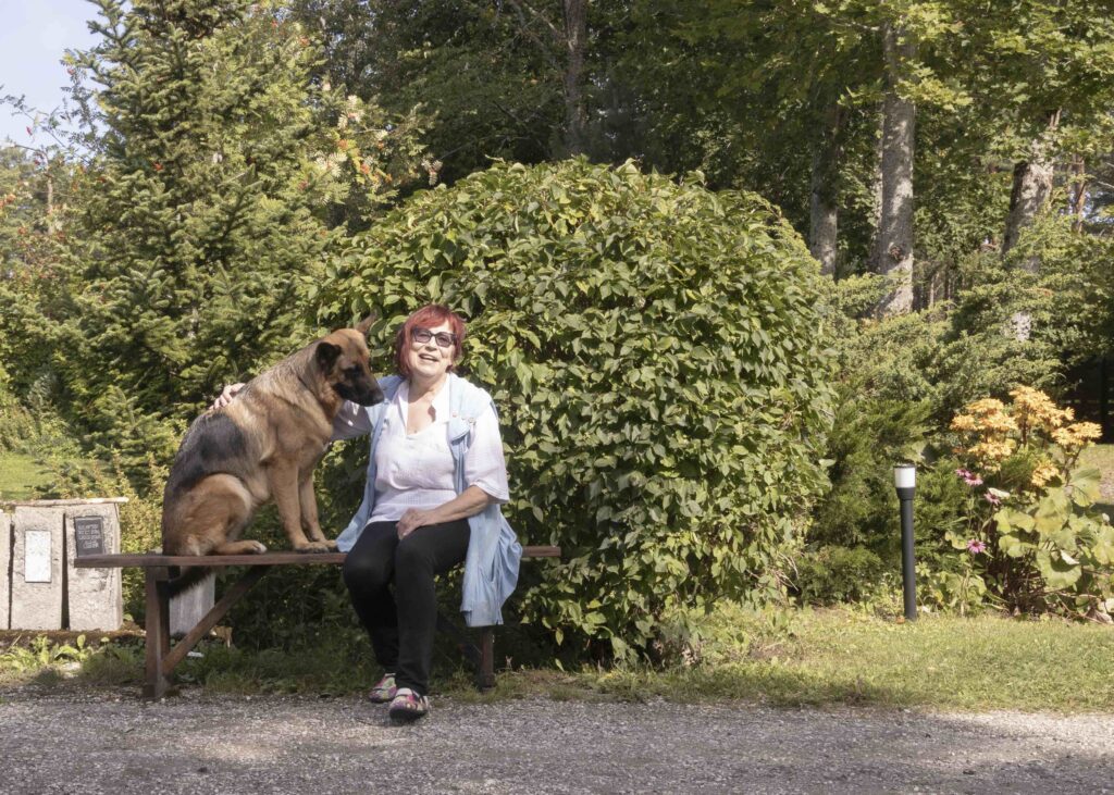 Uurin, kas Terje oleks nõus meile aias väikese ringkäigu tegema. Teeme. Eile oli suur vaibapesupäev, vaipu kuivab igal pool. Enne ei olnud siin ühtki viljapuud, vaid üks totaalne võsa. Sel kevadel said Ojaverid maastikku avardada ning ka majapidamisse väikese krati – robotmuruniitja. Nüüd ta siin töötab. Laidoneri ratsamonumendi hobuse pea järgi võetud vorm seisab uhkelt terrassi kõrval. Küsin, kas neil on aeda ka maakunsti peidetud. „Maakunsti pole, aga neid kunstkive vedeleb küll,” vastab Terje. Lähme vaatame. Näitusega „Petetute tants” tuntuks saanud kivimulaaže hakkas Terje tegema 2009. aastal. Uurin, kas mõni neist ka liigub. „Viimati liikus neli kivi, aga need kasutati nii ära, et nüüd liigub ainult üks, aga see on toas.” Kolm kivi ripuvad praegu hoopis Hiiumaa Viscosa Kultuuritehases. Kõnnime üle puidust silla, mis kevadel muruniiduki jaoks ehitati. Neid lisandus aeda lausa mitu tükki. Muruniidukiga on Terje sõnul üldse üks igavene jama, peamiselt aia eripäraselt vahva maastiku tõttu. Aia keskel on väike oja, mida Ojaverid siia kolides võsa seest tähelegi ei osanud panna.