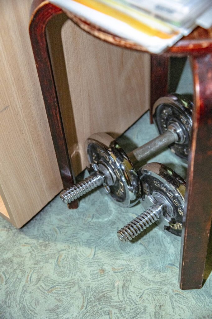Väikesel korteril on palju funktsioone, see paneb mind uurima ruumikitsikuse kohta. Siinsamas toas salvestab Roomet läpakaga paljud oma heliribad. Korteri kaks tuba, kohvikud, ülikooli õppehooned ja raamatukogu katavad Roometi sõnul tema ruumivajaduse täielikult. Ruumiküsimuse tõstatab pigem teiste inimeste hinnang. „Andsin hiljuti välja albumi[1] ühe rootslasega. Ja pärast tegime kaks kontserti Eestis. Ta ööbis siin. Ja kui ta sisse tuli, siis mulle tundus, et ta elas midagi läbi. Ta ei suutnud uskuda, et see on ülikooli kaasprofessori elupaik. Nii väike või kitsas või midagi. Ma ise ei taju seda.”