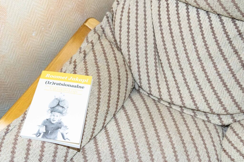 Roomet Jakapi kahetoaline kodu-kontor-stuudio lõhnab natuke tolmuse vaiba ja tapeedi, kohvi ja raamatute järele. Leian end elutoast, kus vaip ja kardinad on pruunikirjud, seinad ebaühtlaselt oranžid, lillat diivanit täiendamas fuksiaroosad padjad. Hämarale hommikuvalgusele lisab tooni kollakas laelamp.