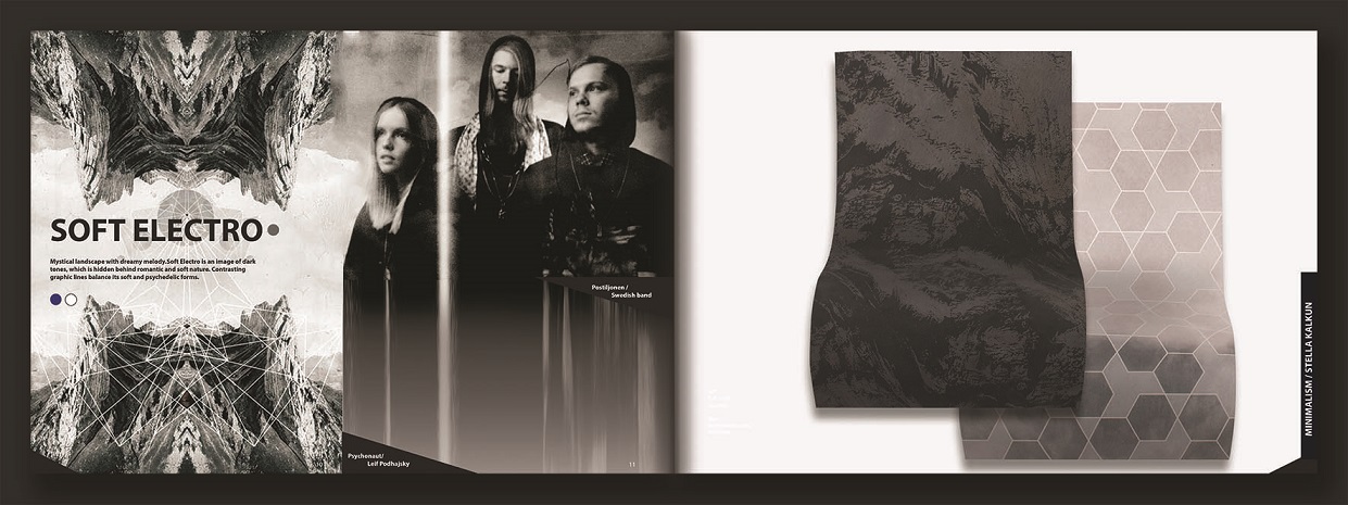 Minu magistritööks on stiiliraamat „Scandinavian graphics trends for textile application”, mis keskendub praegustele skandinaavia suundadele ja trendidele. Trendiraamatud on autotööstuses olulised töövahendid, mis aitavad kontsepte luua. Como stuudio oli lummatud minu päritolust – sellest ka teemavalik. Raamat tutvustab kolme põhisuunda – minimalism, genuine ja new vintage –, mis jagunevad 12 osaks. Toon välja põhilised teemad, koos visuaalide ja originaaltrükis kanganäidistega. Oluline roll on mustridisainil, millega esitlen enda nägemust, kuidas ühildada Skandinaaviast inspireeritud graafilist pinda autotööstuses kasutatavate materjalidega.