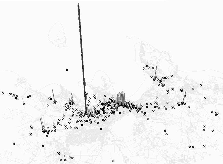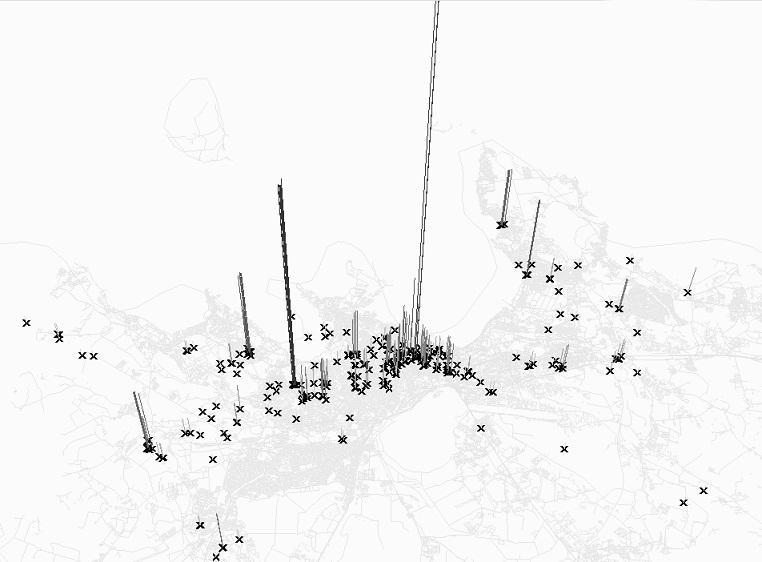 Andmete visualiseerimine annab meie aine kontekstis võimaluse avastada kasutusmustreid, mis jääksid muidu hoomamatuks. Jälgides avalikku ruumi, torkavad esimesena silma rutiinsed üheksast viieni liikumissagedused. Üks anomaaliatest oli internetikasutuse järsk kasv reede õhtul 20–21 vahel – ehk on see märk YouTube’i-diskodest enne edasistele pidudele suundumist.